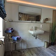 Die 2 Bäder sind modern ausgestattet und bieten Möglichkeit barrierefrei zu duschen. Von der Sonnenterrasse ist leise der Bach zu hören und vermittelt eine romantische Atmosphäre. Ein Jacuzzi und eine Fasssauna runden einen wundervollen Tag ab und tragen zur absoluten Entspannung bei. Radtouren oder Wanderungen sind direkt von der Mühle aus möglich.